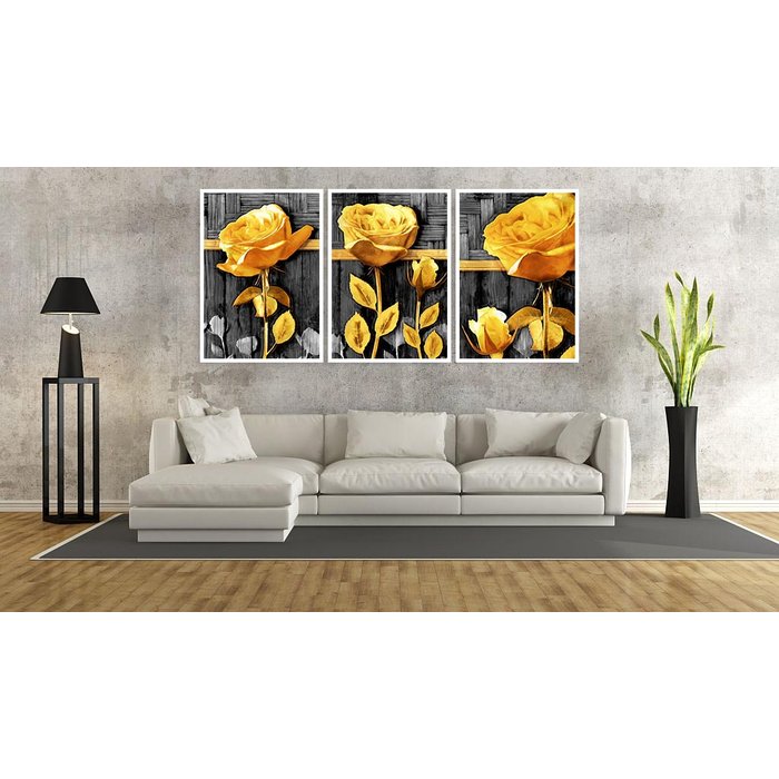 Jogo de Quadros Decorativos Triplo Molduras Marília Rosa Dourada - 60cm Largura x 90cm Altura - Bran