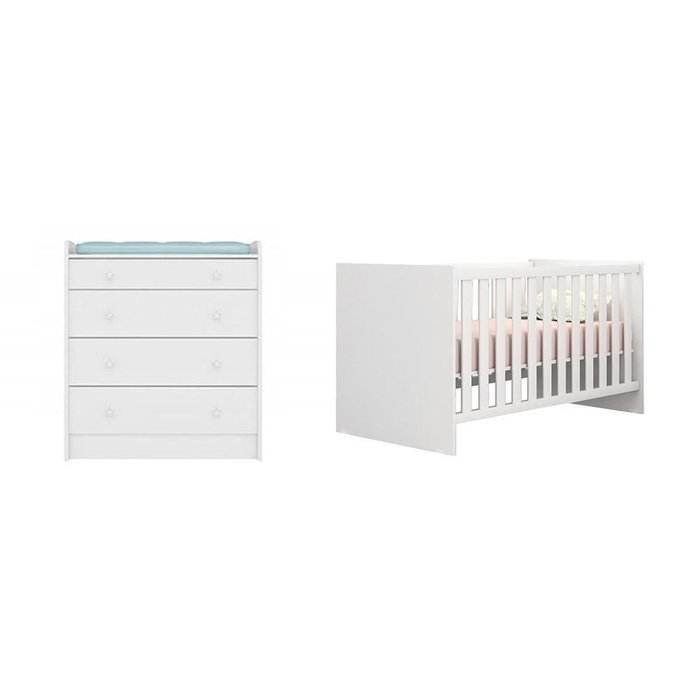 Jogo De Quarto Infantil Com Berço Mini Cama Americano E Cômoda Trocador Doce Sonho Branco - Fbaby