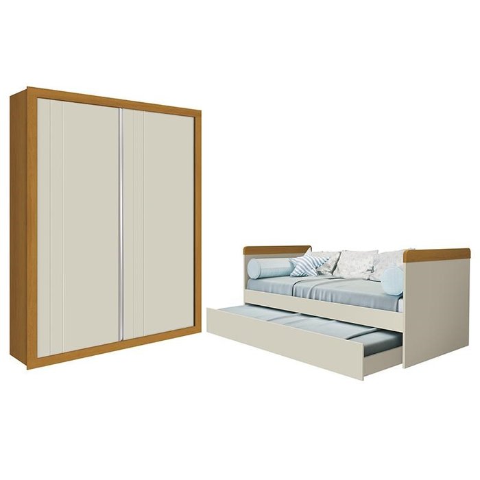 Jogo de Quarto Infantil com Guarda Roupa Prince e Bicama Nuth Areia/Savana - Reller Móveis Areia/Savana
