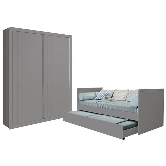 Jogo de Quarto Infantil com Guarda Roupa Prince e Bicama Nuth Cinza Fosco - Reller Móveis
