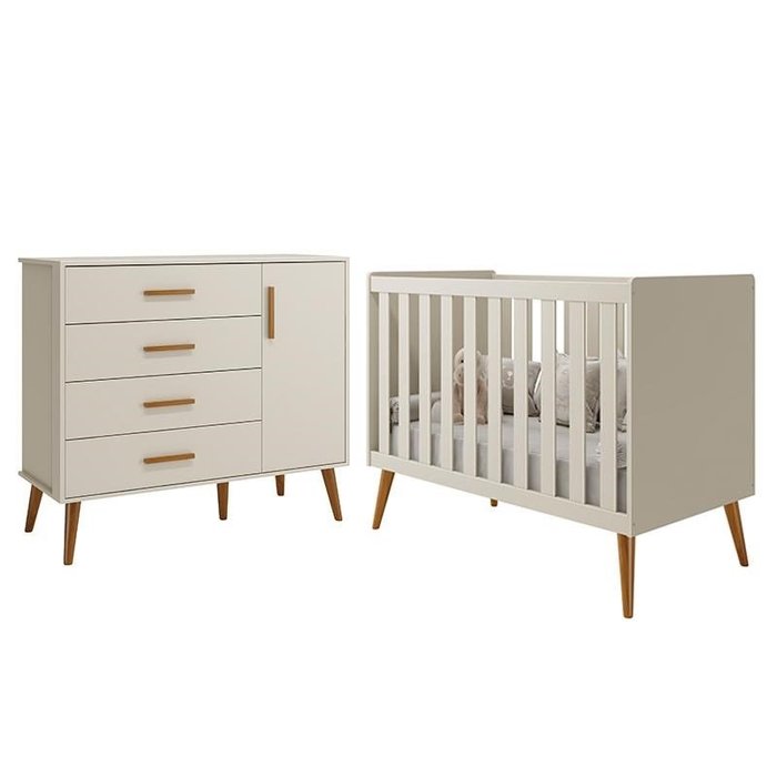 Jogo de Quarto Infantil Isis Cômoda 1 Porta e Berço Areia - Reller Móveis Areia