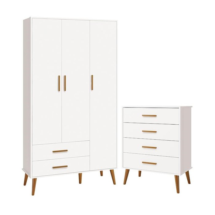 Jogo de Quarto Infantil Isis Guarda Roupa 3 Portas e Cômoda 4 Gavetas Branco - Reller Móveis