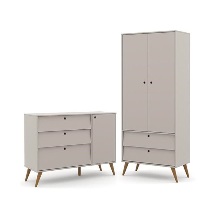 Jogo de Quarto Infantil Retrô Gold Guarda Roupa 2 Portas e Cômoda com Porta Cinza/eco Wood - Matic M