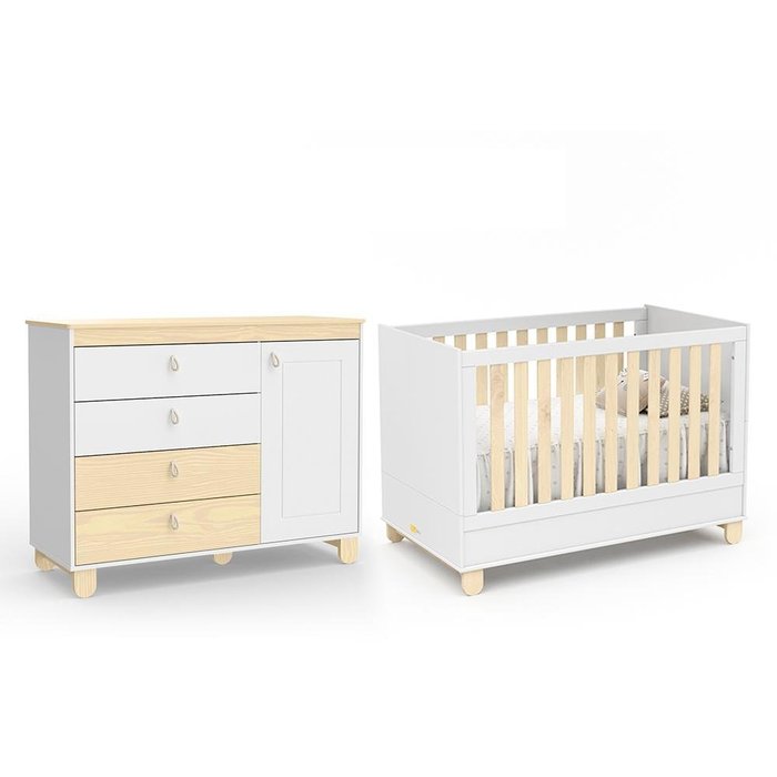Jogo de Quarto Infantil Rope Cômoda com Porta e Berço Natural/branco Soft - Matic Móveis