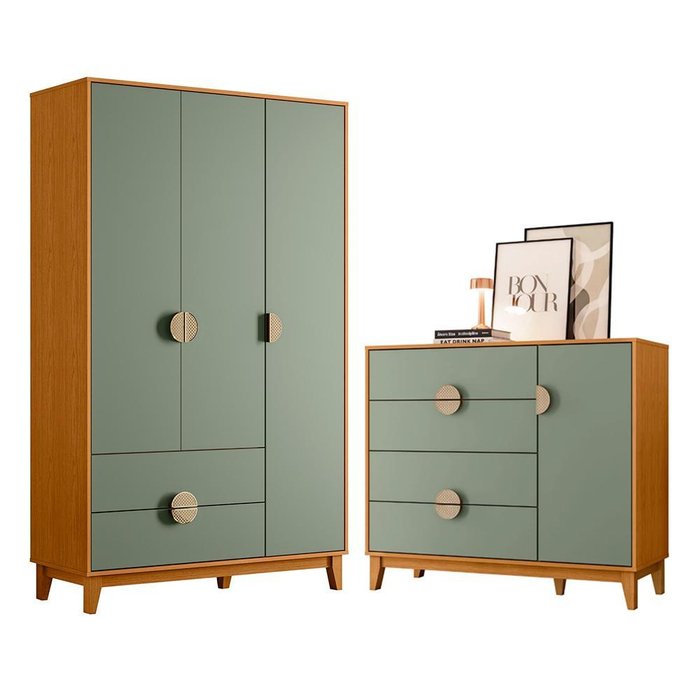 Jogo de Quarto Ipê Guarda Roupa e Cômoda Cinamomo/sálvia - Móveis Albatroz