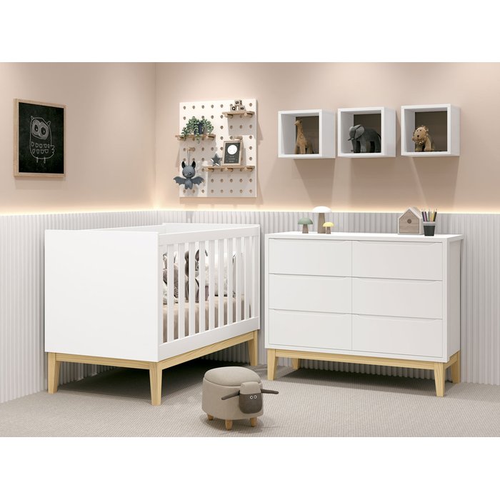 Jogo de Quarto para Bebê Classic New Branco Fosco com Natural - Reller