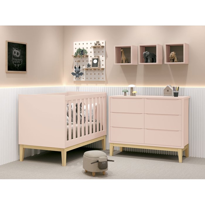 Jogo de Quarto para Bebê Classic New Rosa Fosco com Natural - Reller