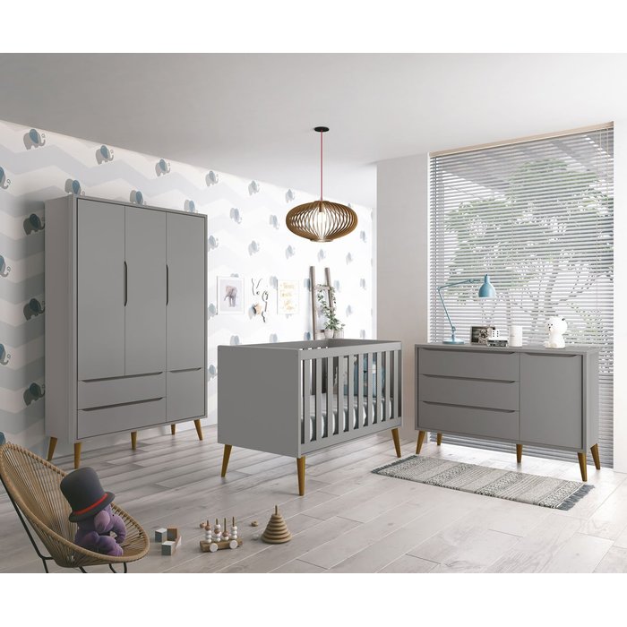 Jogo de Quarto para Bebê Completo 3 Portas Théo New Cinza Fosco com Madeira - MoveisAqui