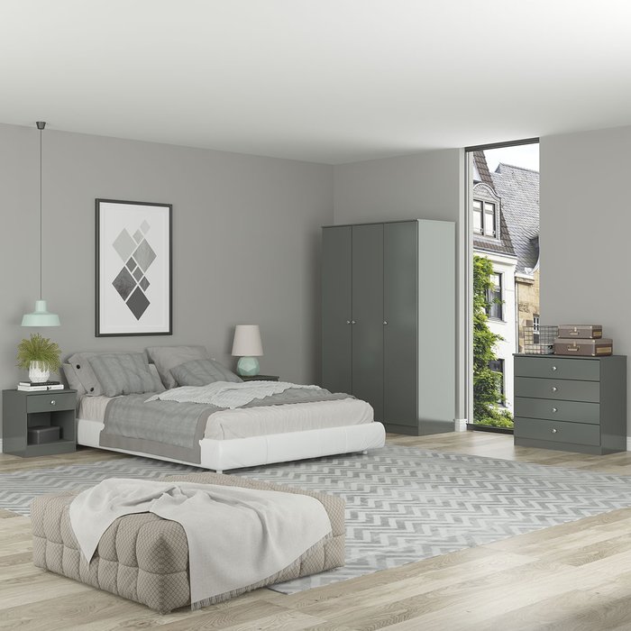 Você merece o melhor quando se trata de móveis para sua casa e a escolha certa para atender todas as suas necessidades. Com um design atual, une versatilidade, conforto e beleza. Dispõe de guarda-roupa com três portas, cômoda com quatro gavetas e mesa de cabeceira com uma gaveta. Você terá muito espaço para manter tudo organizado e ao alcance das mãos. Produzida com materiais de excelente qualidade, garantindo a sua resistência e mantendo sua beleza e funcionalidade por muito tempo. O melhor em móveis no design atual aliando conforto, qualidade e ótimos preços, só na Menu Móveis!