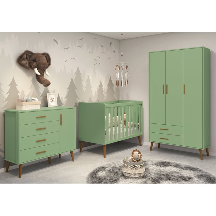 Jogo de Quarto Retrô para Bebê Completo 3 Portas Isis Botânico Fosco - MoveisAqui