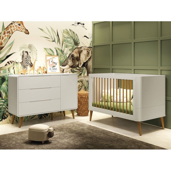 Jogo de Quarto Retrô para Bebê Mila Sapateira Areia Fosco com Madeira - MoveisAqui