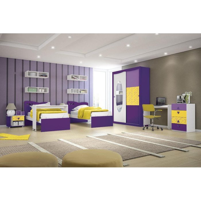 Jogo de Quarto Solteiro Play com 12 Peças - Henn - Branco / Violeta / Mix Primavera