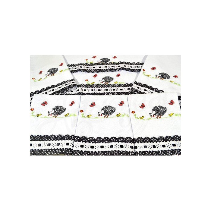 Jogo de Semaninha Laise e Ponto Cruz com Barrado - Vaquinha Arte & Tear Preto Angola branco