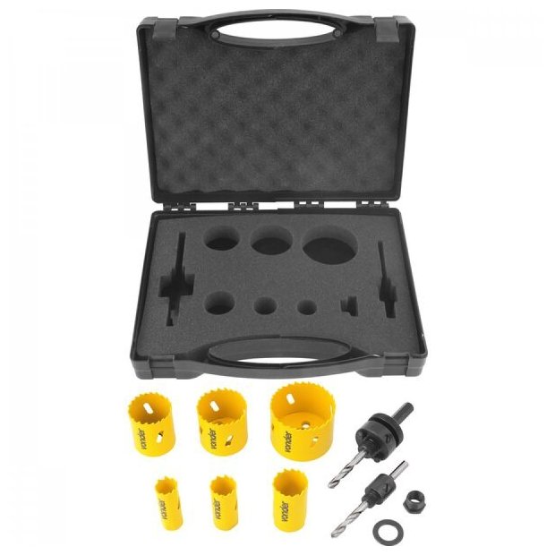 Jogo de serras copo bimetal em aço rápido com 9 peças SCV 200 Vonder