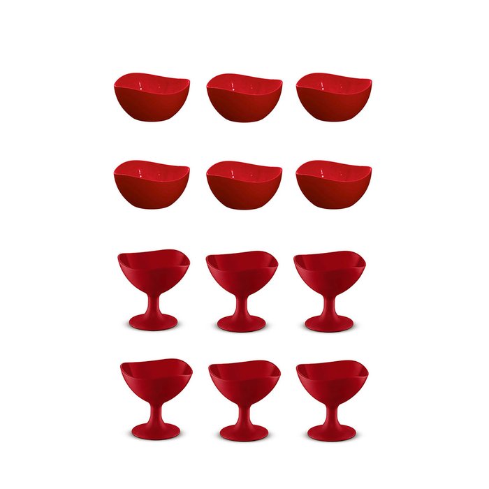 Jogo de Sobremesa Vermelho Taça e Bowl Pote 300ml 12un Vermelho