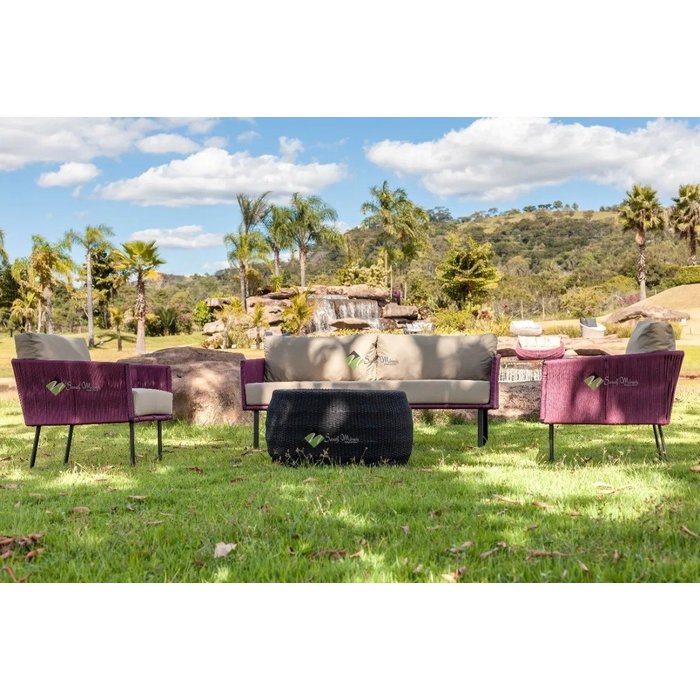 Jogo de Sofá Corda Náutica com 2 Poltronas para Sala Pergolado Jardim Vinho