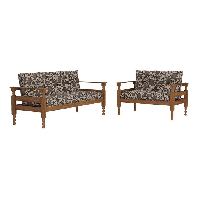Jogo de Sofá Madeira Maciça 2 e 3 Lugares Liz Multimóveis Cr7004 Imbuia/floral Cinza