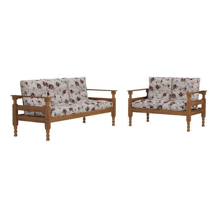 Jogo de Sofá Madeira Maciça 2 e 3 Lugares Liz Multimóveis Cr7004 Imbuia/floral Rosa
