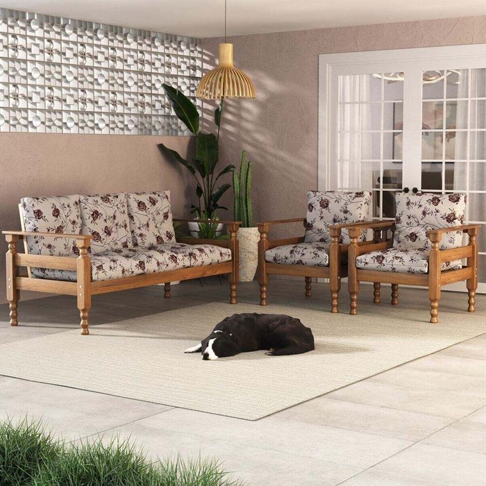 Jogo de Sofá Madeira Maciça Liz 3 Lugares e 2 Poltronas Multimóveis Cr45274