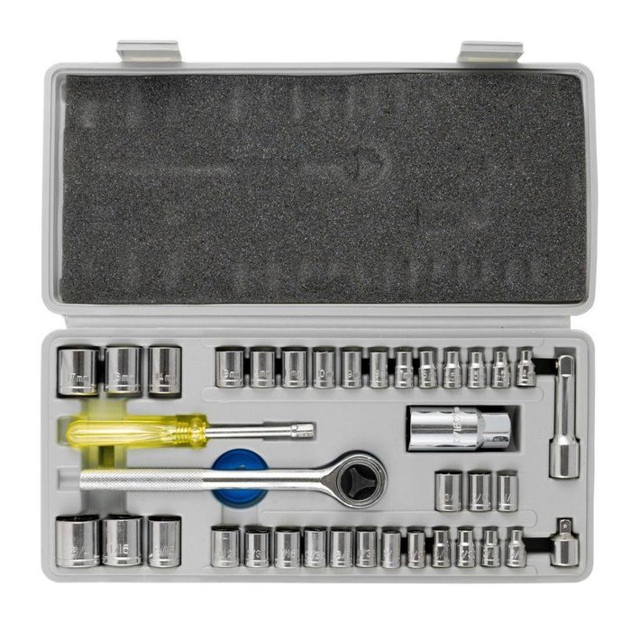 Jogo de Soquetes 1/4 & 3/8 - 40 Peças - EDA O QUE É O SOQUETEO soquete é uma ferramenta utilizada para apertar ou afrouxar porcas, parafusos ou outros elementos de fixação. Ele consiste em uma peça oca, geralmente feita de aço ou outro metal resistente, com uma cavidade interna que se encaixa perfeitamente sobre a cabeça do parafuso ou porca. O soquete é conectado a uma alça ou chave de catraca, permitindo que seja girado para apertar ou soltar o elemento de fixação. Existem diversos tipos de soquetes disponíveis, variando em tamanho, forma e tipo de encaixe, para se adequar a diferentes tipos de parafusos e porcas. Essa versatilidade e eficiência tornam o soquete uma ferramenta fundamental em várias áreas, incluindo mecânica automotiva, construção, manutenção industrial e trabalhos domésticos. PARA QUE SERVE O SOQUETEO soquete serve para apertar ou afrouxar porcas, parafusos ou outros elementos de fixação. Ele é utilizado em conjunto com uma alça ou chave de catraca para aplicar torque sobre o elemento de fixação, permitindo sua instalação ou remoção de maneira eficiente e precisa. Graças à sua versatilidade e variedade de tamanhos e formatos, o soquete pode ser utilizado em uma ampla gama de aplicações, desde trabalhos domésticos até manutenção industrial e mecânica automotiva. COMO UTILIZAR O SOQUETEPara utilizar um soquete, selecione o tamanho e tipo adequados para a porca ou parafuso a ser apertado ou afrouxado. Encaixe o soquete completamente sobre a cabeça do elemento de fixação e escolha uma alça ou chave de catraca compatível. Fixe a alça ou chave de catraca no encaixe do soquete e aplique torque girando no sentido horário para apertar e no sentido anti-horário para afrouxar. Verifique se o trabalho foi realizado conforme necessário e limpe as ferramentas após o uso, armazenando-as corretamente para preservação. DESCRIÇÃO DO SOQUETE- 12 Soquetes de encaixe 1/4? sextavados: 5/32?, 3/16?, 7/32?, 1/4?, 9/32?, 5/16?, 11/32?, 3/8?, 13/32?, 7/16?, 15/32? e 1/2?; - Soquetes de encaixe de 3/8? sextavados: 7/16?, 1/2 e 9/16?; - 3 Soquetes de encaixe de 3/8? sextavados: 14, 16 e 17 mm; - 3 soquetes de encaixe 1/4? octogonais: 1/4?, 5/16? e 3/8?; - 12 Soquetes de 1/4? sextavados: 4, 4.5, 5, 5.5, 6, 7, 8, 9, 10, 11, 12 e 13 mm; - 1 Catraca encaixe 3/8?; - 1 Cabo de força 6?; - 1 Adaptador 3/8?F x 1/4?M; - 1 Disco de giro; - 1 Extensão de 3?, encaixe 3/8?; - 1 Soquete para vela encaixe 3/8? x 13/16? (21 mm); - Estojo moldado; - Marca: EDA; - Código: 3FW. Distribuidor Autorizado para todo o Brasil. O Grupo Piveta Ferramentas é uma empresa com mais de 30 anos no mercado e líder no segmento de Máquinas e Ferramentas para Usinagem, contamos com mais de 25 Mil produtos para melhor lhe atender. Temos como compromisso um atendimento personalizado, entrega rápida e excelência na prestação de serviços. Não perca tempo procurando, a ferramenta certa para você está aqui. É importante ressaltar também que nossa atuação não se limita ao setor de Usinagem Mecânica, nossa variedade de produtos nos permite atender a vários setores como Agronegócio, Embalagem Plástica, Retifica de Motores, Usinas de Açúcar e Álcool, Manutenção Industrial (Usinagem e Caldeiraria), Mineração, Área de Fertilizantes, Frigoríficos, Usinagem Médio para Grande Porte e Automação Industrial. Desta forma fortificando e ajudando no desenvolvimento econômico do nosso país.