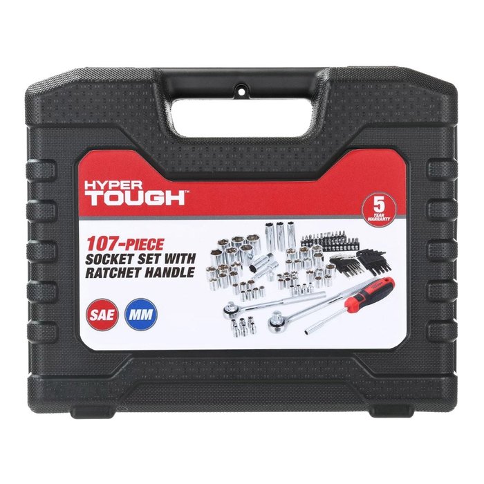 Jogo de Soquetes Aço Profissional 107 Peças Sextavado com Catraca e Maleta Hyper Tough GO20223901206