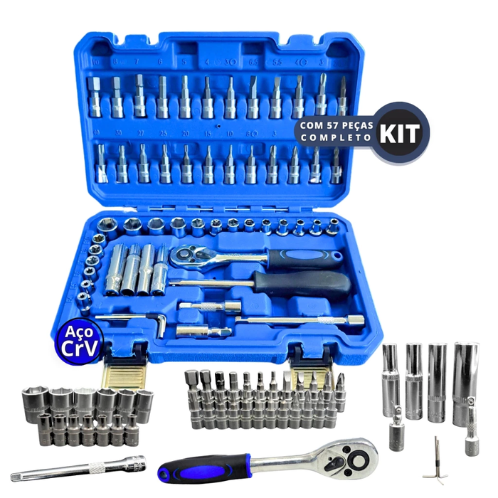 Jogo de Soquetes e Bits com Chave Catraca – 57 Peças – QBX Quality