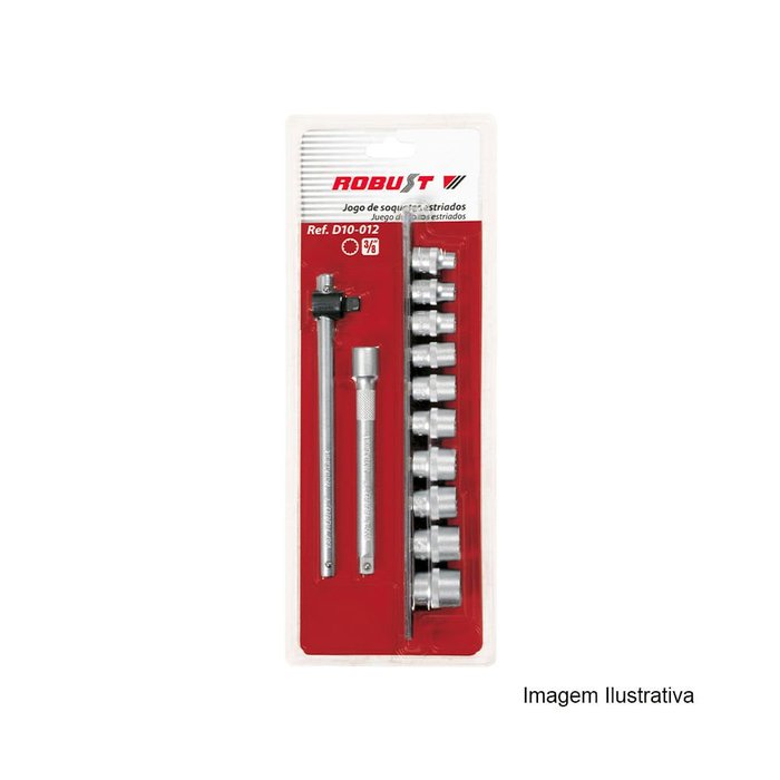 Jogo de Soquetes Estriados 3/8" 12 Peças Ref D10-012 Robust 060.626