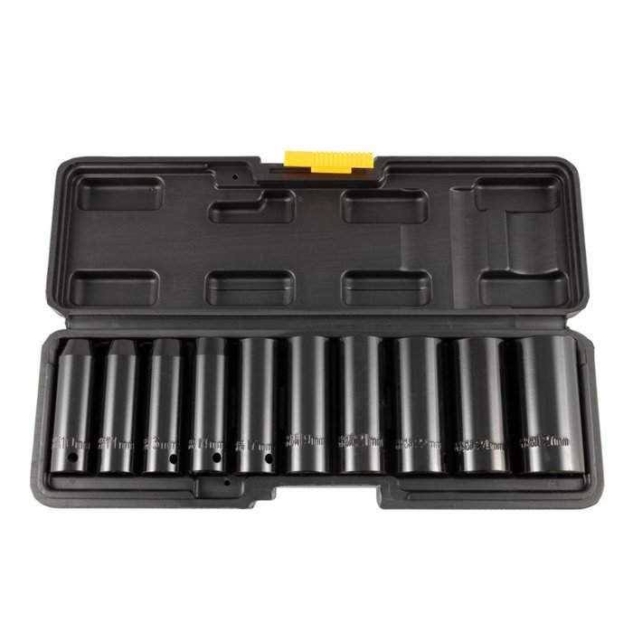Jogo de Soquetes Impacto Longo 1/2" - 10-27mm - Aço Cromo Vanádio - 10 Peças - Eda