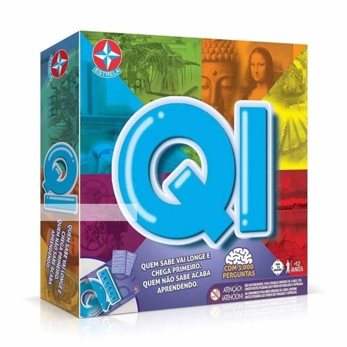 JOGO DE TABULEIRO - DIDÁTICO - QI - 3000 Perguntas - ESTRELA : com este jogo quem sabe vai longe e chega primeiro. Quem não sabe acaba aprendendo. Um jogo vibrante e divertido para toda a família. São 3000 perguntas nos mais variados níveis de dificuldades, divididas em 6 categorias: variedades e curiosidades, arte e entretenimento, ciência e história. Junte seu amigos e se prepara para quebrar a cabeça para responder as perguntas mais curiosas!