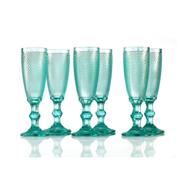 Jogo de Taças Bolinha para Champagne em Vidro Azul Tiffany de 200 ml com 06 Peças