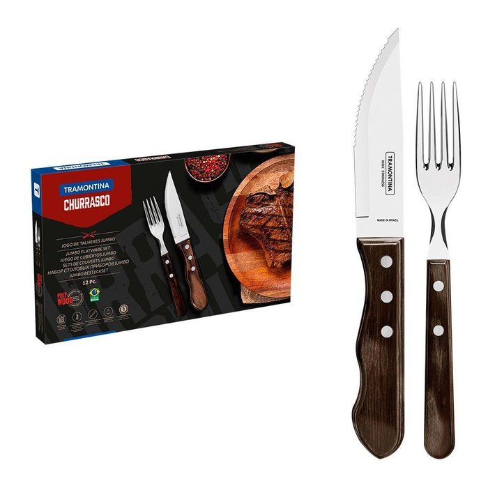 Itens inclusos:6 Garfos Jumbo Polywood6 Facas para Churrasco Jumbo 5 Polywood