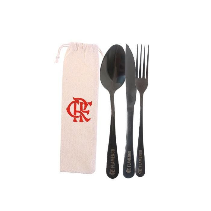 Este kit de talheres de inox preto do Flamengo é ideal para te acompanhar na rotina. O kit é composto de um garfo, faca, colher preto com o simbolo do clube do Flamengo e com uma bolsinha de algodão cru, uma combinação de design, resistência e qualidade. Uma escolha certa para recusar os talheres descartáveis de forma prática e estilosa. Os talheres são composto por 3 peças produzidos em aço inox com banho especial, que proporciona acabamento impecável e uma excelente apresentação. Se você procura um estilo de vida mais sustentável inspire-se com os nossos talheres reutilizáveis de inox.