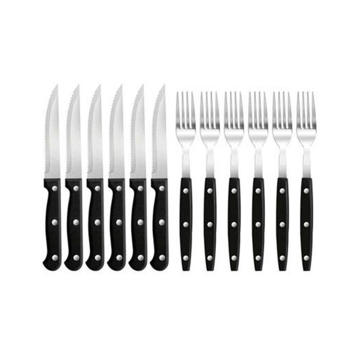 Jogo de Talheres Garfo e Faca cabo Preto 12 peças