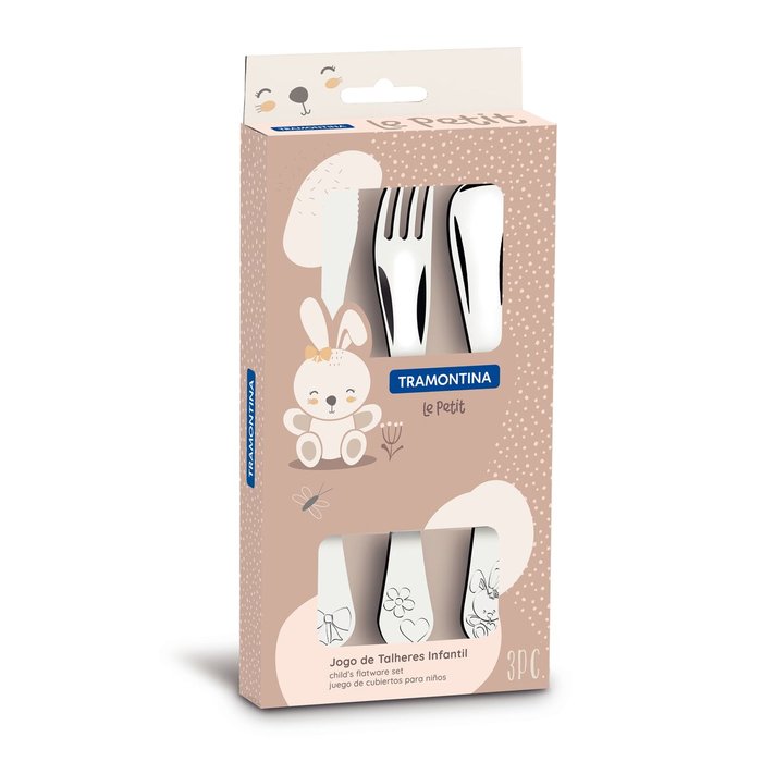 Jogo de Talheres Infantil Le Petit Tramontina Coelhinho - Cinza