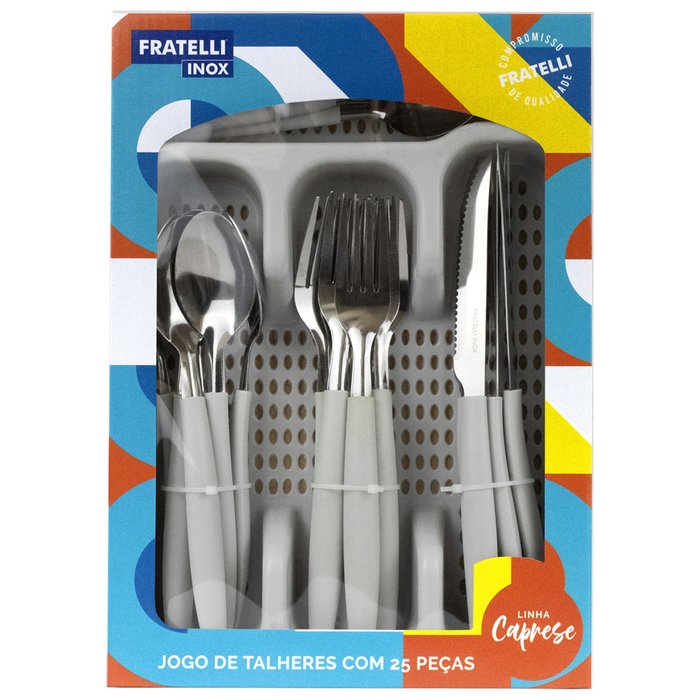 Jogo de Talheres Inox 25 Peças Faqueiro Linha Caprese com Porta Talher Cinza Fratelli