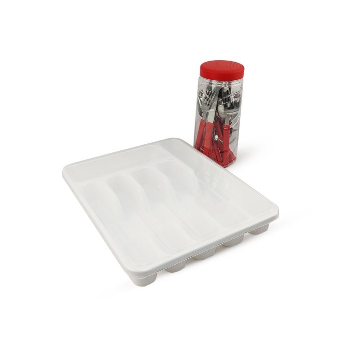 Jogo de Talheres Inox Cabo de Plástico 24 Peças + Porta Talheres Extra Grande 6 Divisórias C/ Tampa