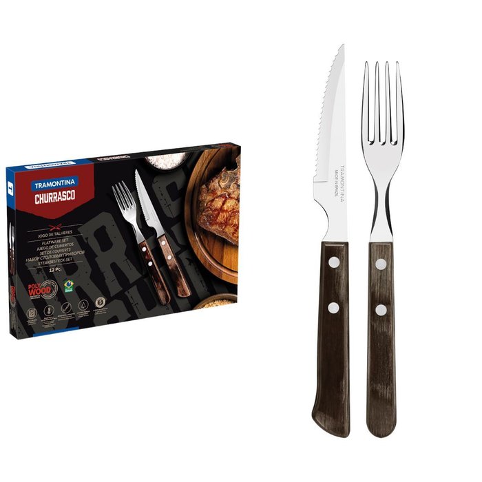 | Composição | 6 Faca para Churrasco 4" Polywood; 6 Garfo de Mesa Polywood. |