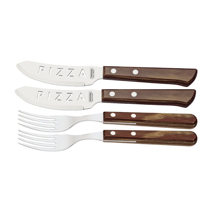 Jogo de Talheres para Pizza 4 Peças Tramontina Aço Inox Cabo Castanho Estojo de Madeira Castanho