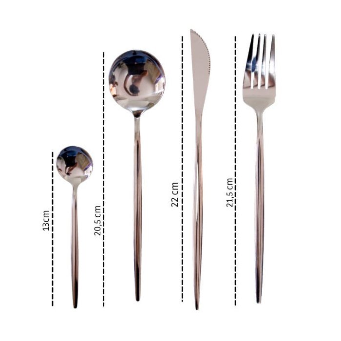 Feito em um peso e tamanho equilibrados, o conjunto de talhres é confortável de usar, não muito pesado e nem muito leve, alças mais largas oferecem fácil aderência para jantar, uma boa adição moderna e combina bem com seus utensílios de cozinha dourados.