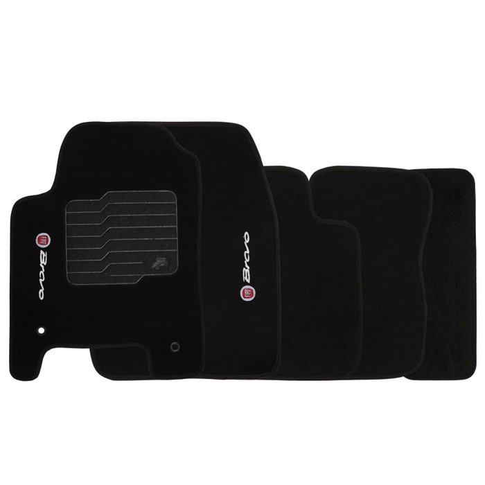 Jogo de Tapete Automotivo Carpete Fiat Bravo 2011 À 2016 Soft Logo Bordado Preto 5 Peças