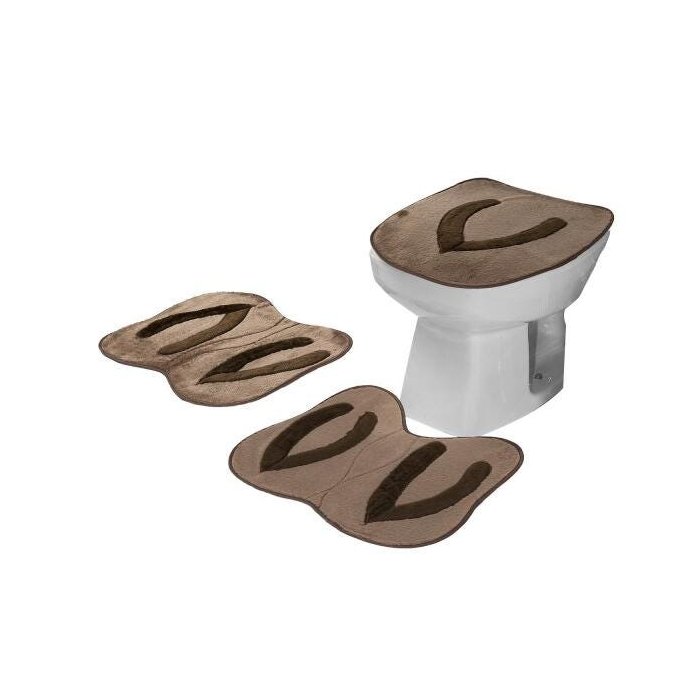 Jogo De Tapete Banheiro 3 Peças Formato Chinelo Bege/Marrom