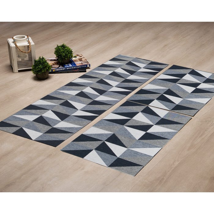 Jogo de Tapete jacquard Triangulos Azul Antiderrapante 3 Peças FASTLAR Jogo de Tapetes