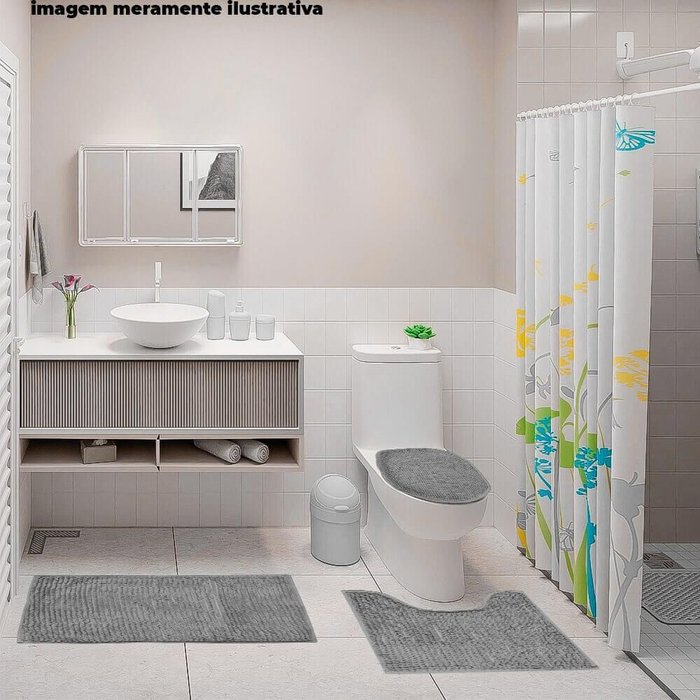 Composto por três peças, o conjunto inclui um tapete em U de 40x40cm, perfeito para a base do vaso sanitário, um tapete retangular de 40cm de largura e 60cm de comprimento, ideal para a frente da pia ou do box, e um tapete oval com elástico de 40cm de largura e 45cm de comprimento, que pode ser utilizado na tampa do vaso sanitário ou complemento em qualquer área do banheiro.