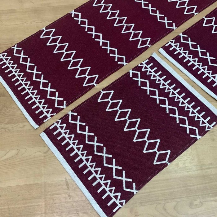 Contém: - 1 Passadeira 0,40m x 1,30m- 2 Tapetes 40cm x 60cm