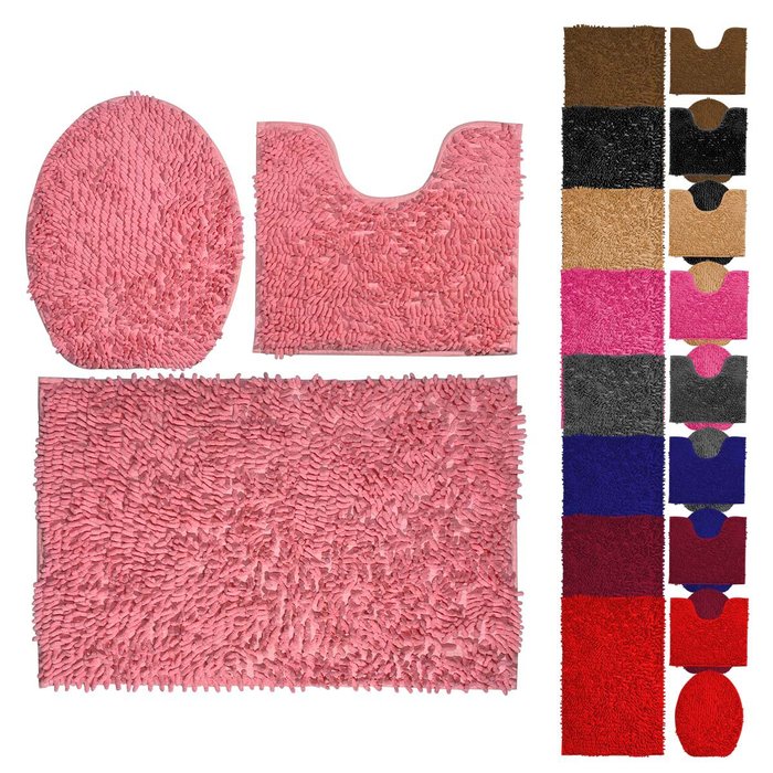 Esse jogo de tapetes de banheiro é perfeito para aqueles que procuram uma solução bonita e funcional para decorar seu banheiro. Esse jogo de tapetes vem com três peças. Sendo elas: