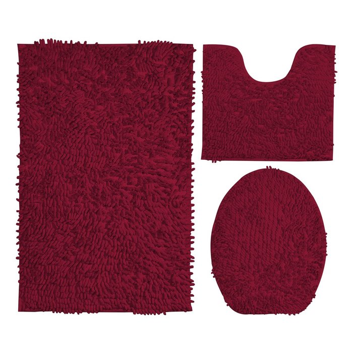 Jogo de Tapetes 3 Peças para Banheiro Macarrão Bolinha:Vinho