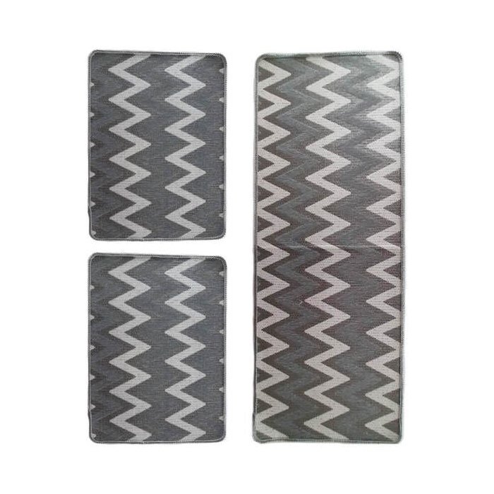 Jogo de Tapetes Cozinha 3 Peças Pratik Chevron Oasis