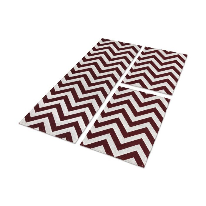 Jogo de Tapetes Cozinha Passadeira 3 Peças Antiderrapante: Chevron/Vermelho
