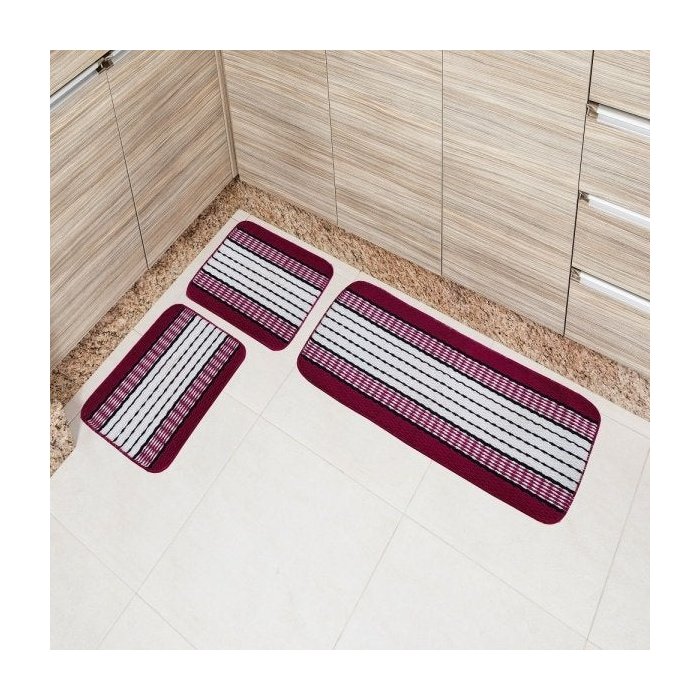 Jogo de Tapetes de Cozinha Ônix Pop 3 Peças Bordô
