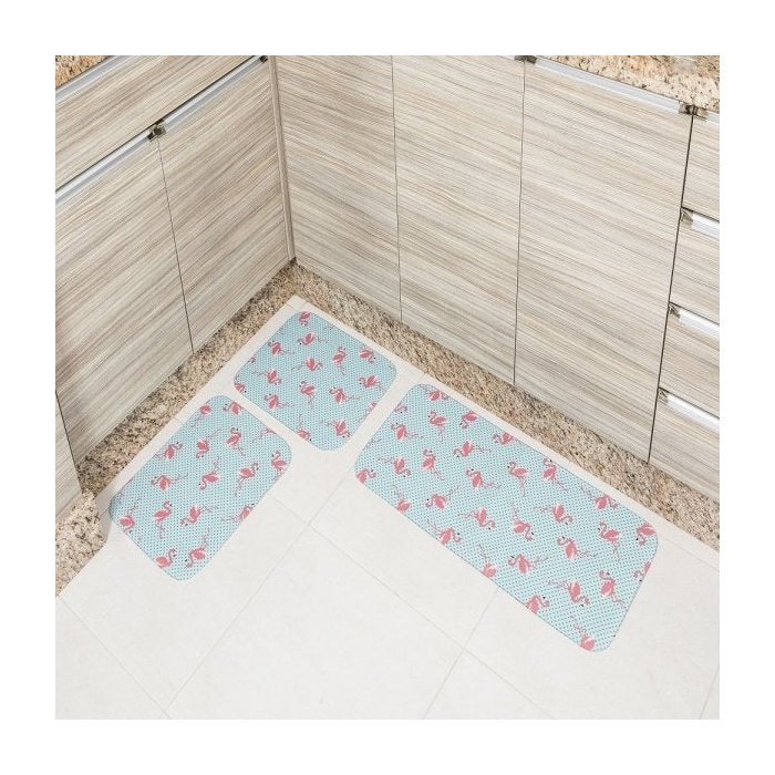 Jogo de Tapetes de Cozinha Tecil Pop 3 Peças Flamingo Azul